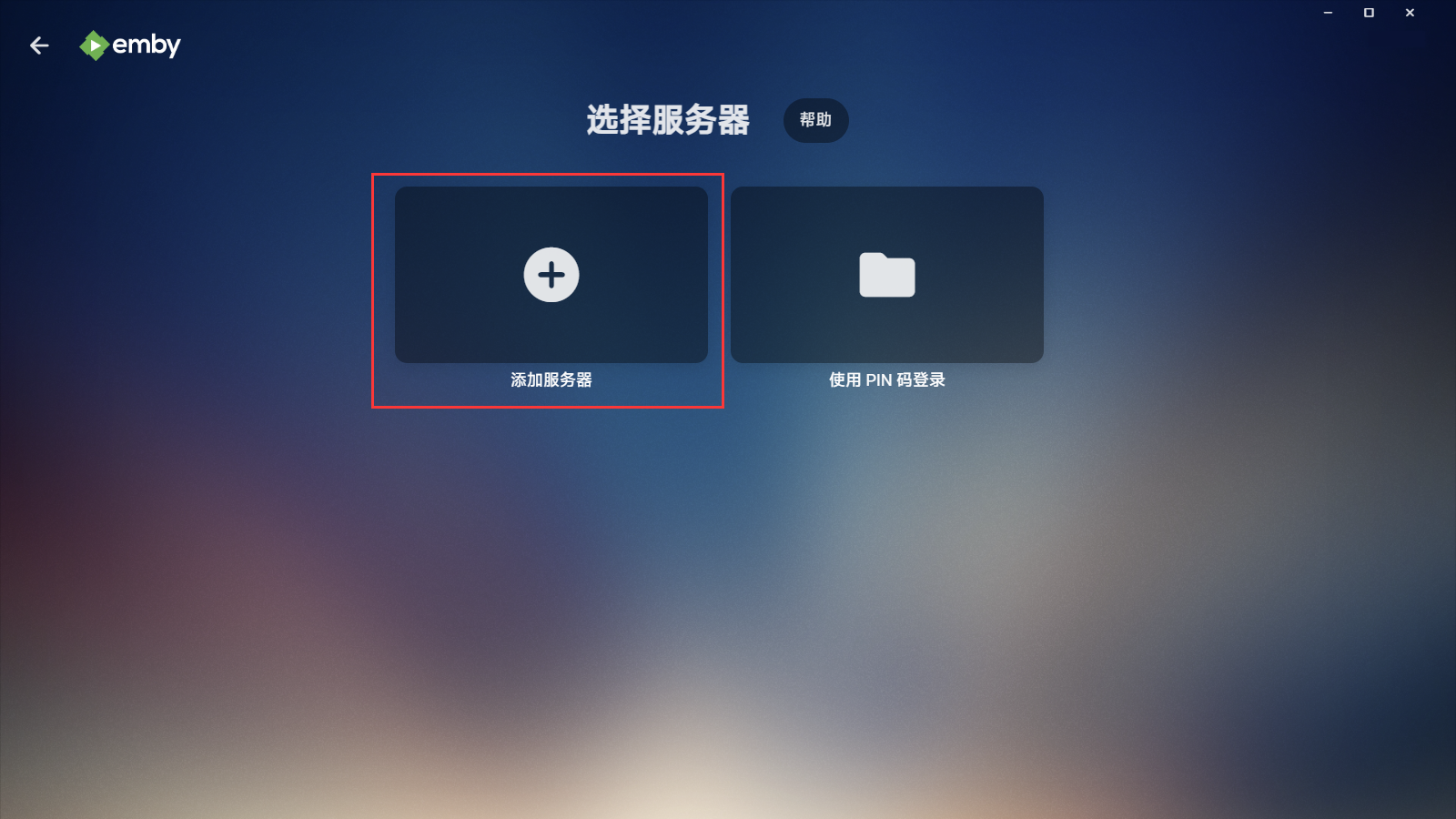 - 打开桌面的 Emby 图标后,不会弹出需要登录 Emby 账号的提示,直接选择 添加服务器 即可