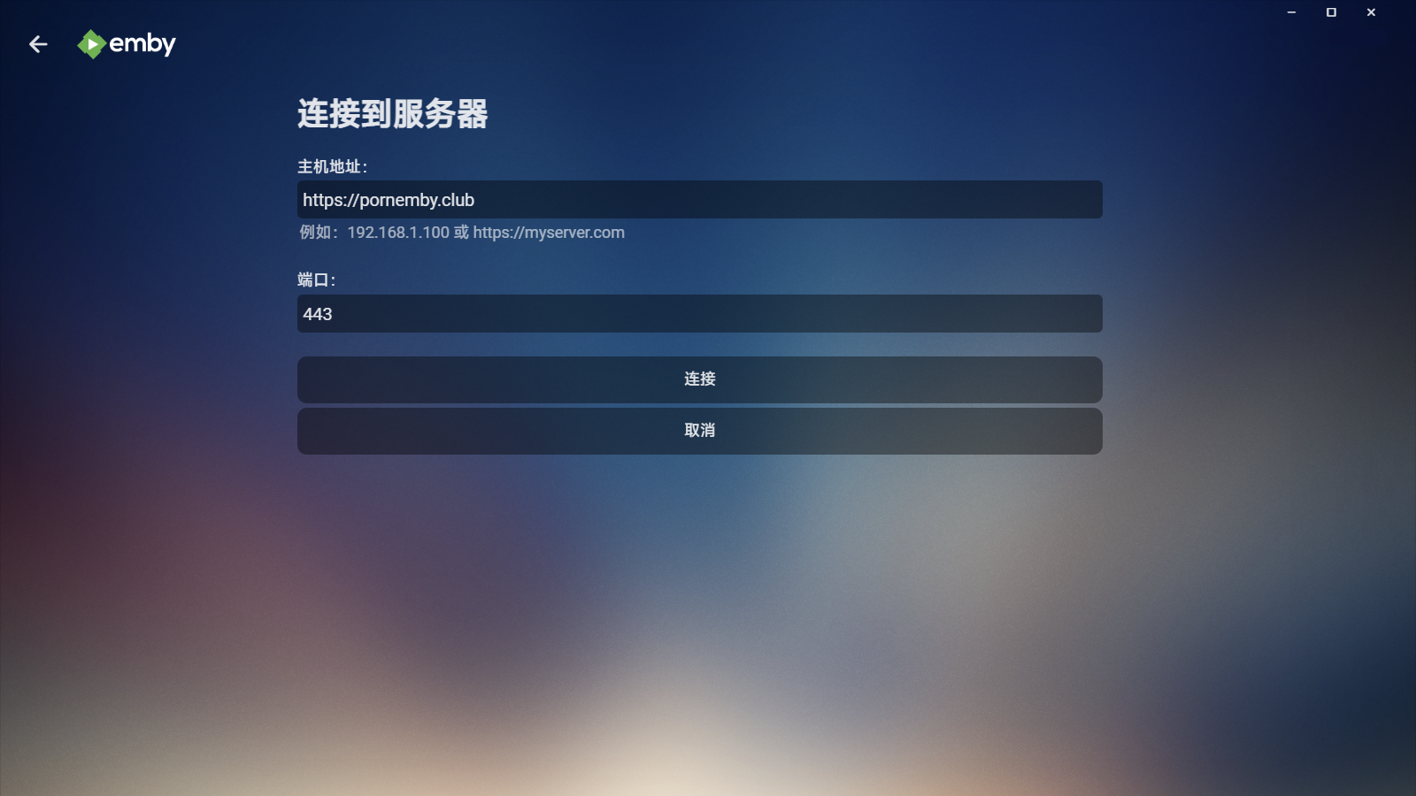 - 在「主机地址」输入 - https://pornemby.club,在「端口」输入- 443并点击「连接」进行登录操作