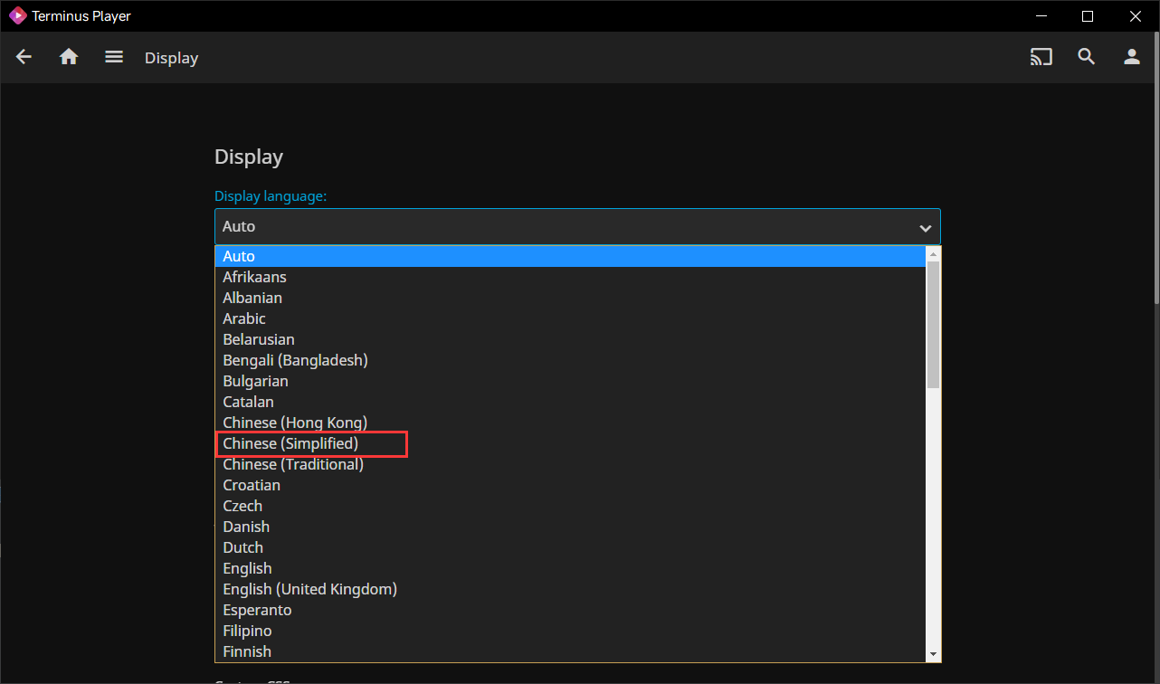 - 【重要】语言设置 - 点击设置页面的 Display 进入界面设置,点击 Display Language (界面语言),选择 Chinese Simplified (简体中文) 或 Chinese Traditional (繁体中文)