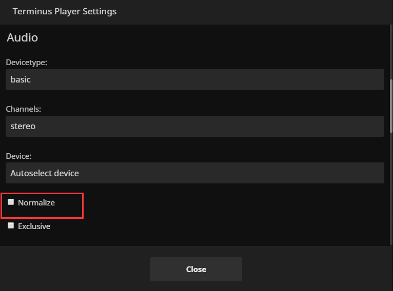 - 取消勾选 Audio (音频设置) 下的 Normalize (音量规格化)。此功能主要是将声音小的部分增大、将声音大的部分减小,以达到响度平衡的功能,但在视频安静的场景中增大音量会导致不必要的底噪,因此需要将此功能关闭。