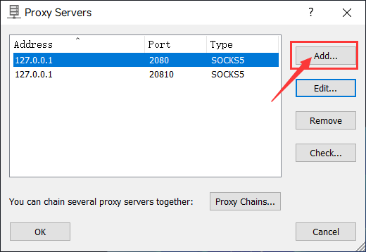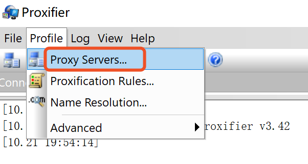 - 代理服务器设置 - 打开 proxifier,依次在 “Profile” —> “Proxy Server…”