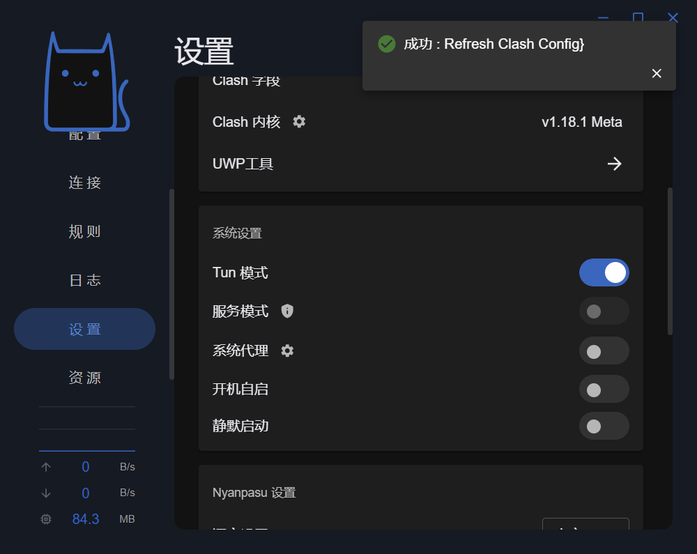 本教程以 Clash Nyanpasu 为例,Clash Verge 及其衍生工具均适用。其余客户端请自行搜索教程